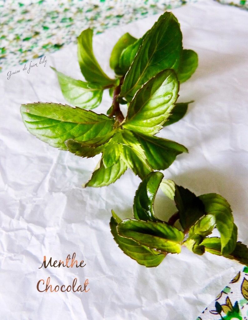 C'était aussi l'occasion pour moi de vous parler de la MENTHE CHOCOLAT de mon jardin, avec mon homme on a découvert et gouté celle-ci dans un restaurant gastronomique de la ville et on tout fait pour trouver un plant en jardinerie. Un menthe au gout très frais qui rappelle le célèbre sirop MENTHE GLACIALE. Et pourquoi Chocolat, de part de sa couleur foncé je suppose, je vous conseille de "machouiller" une de ses feuilles après un plat aillé, fraicheur garantie et tellement plus naturellement que le chewingum ;-) Elle se marie aussi à merveille avec bonne glace vanille, oui oui je veux du soleil malgré la triste météo par ici :-)