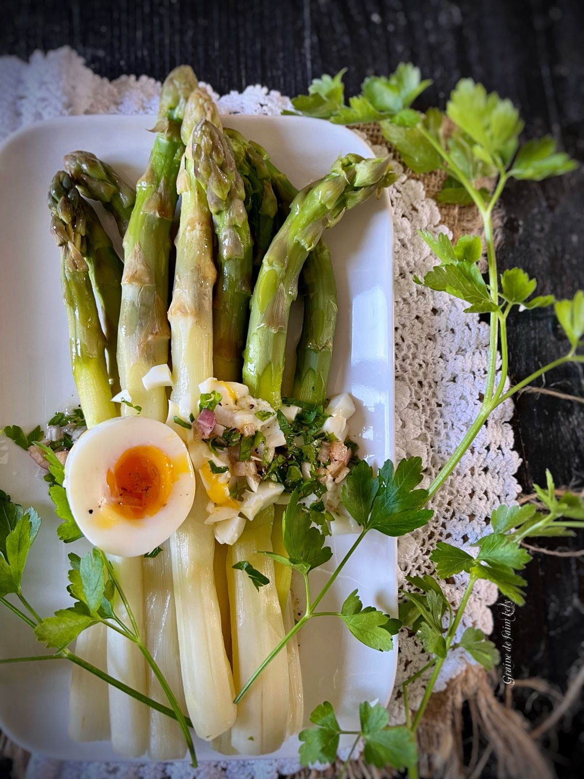 * Pour un plat complet, doublez la dose d'asperges et d'oeufs par personne et bien sûr adaptez la dose de vinaigrette ;-)